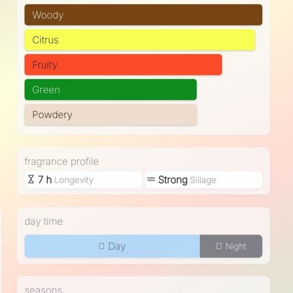 Top notes – Green Apple, Calabrian Bergamot, Mandarin Orange