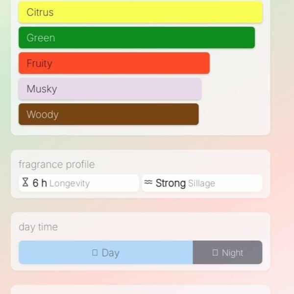 citrus, green, fruity, musky, woody, aromatic, powdery, fresh spicy, fresh, floral
