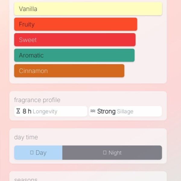 Middle notes – Cinnamon, Clary Sage, Caraway